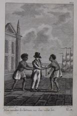 EGYPT. Egijptenaars. (Amsterdam, Johannes Allart, 1802-07).Handcoloured aquatint plate by L. Portman after J. Kuyper, depicting a man and woman from Egypt. Ca. 13,5 x 9 cm. In: M. Stuart, De mensch zoo als hij voorkomt op den bekenden aardbol. - The first Dutch treatise on geographical anthropology. - Fine.Landwehr, Coloured Plates, 448; Tiele 1065. [Boeknr.: 32977 ]