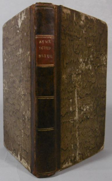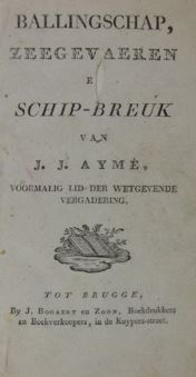 AYMÉ, Jean Jacques. Ballingschap, zeegevaeren en schip-breuk. Brugge, J. Bogaert en zoon, (ca. 1800).Sm.8vo. Contemporary half calf (1 hinge sl. damaged but holding). With woodcut title-vignette (small hole on title-page rep.). (4),220,(21) pp. First French edition published in Paris in 1800 Déportation et naufrage de J.J. Aymé. - Aymé (1752-1818), imprisoned during the French Revolution, was sent to Guiana (Devil's Island) as a prisoner. He recounts in detail the horrendous conditions in French Guiana. After a year he escaped in an American ship bound for Gothenburgh. The ship encountered a very bad storm in the North Sea, and at last struck on the coast of Scotland, near Fraserburgh. Most of those on board were lost, but Aymé and a few others were taken off the wreck by a boat from shore. Aymé at last returned to France. Including information on the colony and the inhabitants and an alphabetical list of names of deportees and the ships they embarked upon. Cf. Sabin 2521; Huntress 132C; Work p.275; not in Cat. NHSM. [Boeknr.: 38123 ]