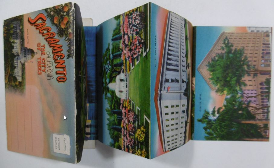 SACRAMENTO. Sacramento. California. The city of trees. Sacramento, E.C. Spangler, (ca. 1937).Original pictorial wrappers. Leporello with 20 coloured views. Ca. 11 x 15,5 cm. [Boeknr.: 37963 ]