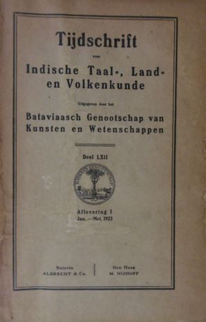 KONINKLIJK BATAVIAASCH GENOOTSCHAP. Feestbundel uitgegeven door het Koninklijk Bataviaasch Genootschap van Kunsten en Wetenschappenbij gelegenheid van zijn 150 jarig bestaan 1778-1928. Weltevreden, G. Kolff & Co., 1929. 2 volumes. 8vo. Original cloth, gilt lettering. With plates. II,429; II,437 pp. Contributions by F.D.K. Bosch, H.C.R. Brandstetter, J.C. van Eerde, Th. van Erp, S.J. Esser, R. Goris, B. de Haan, B.J. Haga, J. van Kan, R.A. Kern, J.P. Kleiweg de Zwaan, N.J. Krom, J. Kunst, C.C.F.M. Le Roux, A. Maass, E.C. Godée Molsbergen, J.H. Neumann, A.W. Nieuwenhuis, Th. Pigeaud, P.V. van Stein Callenfels, etc. [Boeknr.: 30229 ]