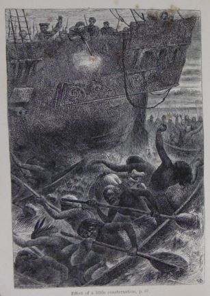 WILLIAMS, John. A narrative of missionary enterprises in the South Sea Islands; with remarks upon the natural history of the islands, origin, languages, traditions, and usages of the inhabitants. 9th edition. London, John Snow, 1838.Contemporary half calf (top of spine restored). With engraving on titlepage, fine coloured portrait of Te Po (Baxter print), folding map and 25 wood-engravings by G. Baxter. XVIII,(2),506 pp. First edition published in 1837. - The nice frontispiece depicting a tattooed chief of Raotonga is printed in oil colours by George Baxter. Rev. Williams was the ablest missionary to the Polynesian people, and his book was the most often printed and widely read of all the contemporary accounts. In 1839 he was killed and eaten while visiting the island of Erromango in the New Hebrides. Mainly dealing with the Hervey Islands group now called the Cook Islands, Rarotonga and Samoa.Hill 1876; O'Reilly/Reitman 7568. [Boeknr.: 10869 ]