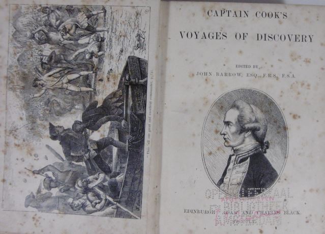 COOK, James. Captain Cook's voyages of discovery. Edited by John Barrow. Edinburgh, Adam and Charles Black, 1860.Sm.8vo. Contemporary cloth. With portrait on title-page, frontispiece, facsimile, and 5 engraved plates. 633 pp. The three famous expeditions to the Pacific of the English navigator and hydrographer James Cook (1728-1779). - (Library stamp on title-page).Beddie 165. [Boeknr.: 32912 ]