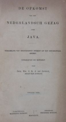 JONGE, Jan Karel Jakob de. De opkomst van het Nederlandsch gezag over Java. Verzameling van onuitgegeven stukken uit het Oud-Koloniaal Archief. Deel II. 's Gravenhage, Martinus Nijhoff, Amsterdam, Frederik Muller, 1870. Half cloth. CXXXIII,293 pp. [Boeknr.: 38098 ]
