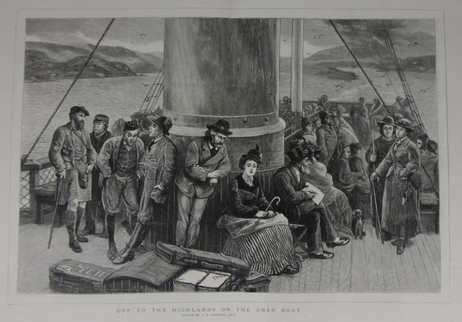 GRAPHIC. Off to the Highlands on the Oban boat. London, The Graphic, 1876.Double-page woodengraving by J.E. Hodgson. Ca. 39 x 58 cm. [Boeknr.: 37949 ]
