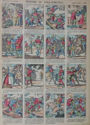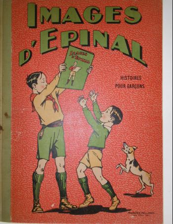 IMAGERIE PELLERIN. Histoires pour garçons, (ca. 1900). Folio. Original pictorial boards. Album with 24 lithographed catch-penny prints. Jean-Charles Pellerin (1756-1836), French draftsman, illustrator and printer is famous for the images of Epinal. Succeeding his father, he took in 1773 the direction of the "Factory of Pellerin". From 1796, he expanded his activity and created the "Imagerie Pellerin". As early as 1800, he started a small business, a real imaginary industry, which later became known as Imagerie d'Epinal. Contains: Aventures de deux petits moineaux, Histoire de Guillaume-Tell, Histoire du loup blanc, Le bayard du Canada, Le tout petit, petit poucet, La nouvelle Barbe-bleue, Le cheval de bronze, etc. [Boeknr.: 38110 ]