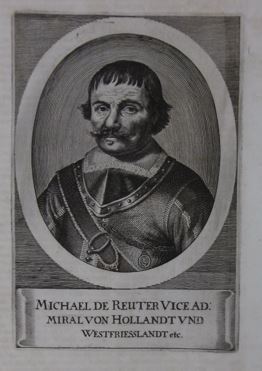 RUYTER, Michiel Adriaansz. de. Michael de Reuter Vice Admiral von Hollandt und Westfriesslandt etc. (Frankfurt am Main,1650.Engraved oval portrait by Matthäus Merian. 22 x 16 cm. From: Theatrum Europaeum. - Michiel Adriaenszoon de Ruyter (1607 - 1676) was a Dutch States navy officer. His achievements with the Dutch navy during the Anglo-Dutch Wars earned him the reputation as one of the greatest naval commanders in history. [Boeknr.: 38115 ]