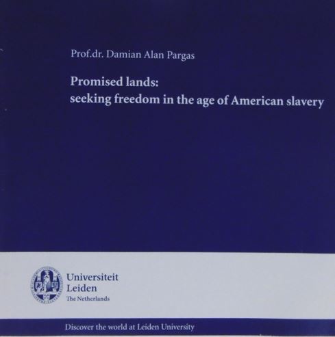 PARGAS, Damian Alan. Promised lands: seeking freedom in the age of American slavery. Inaugural lecture. Leiden, Universiteit Leiden, 2018. 4to. Wrappers. 14 pp. [Boeknr.: 38069 ]